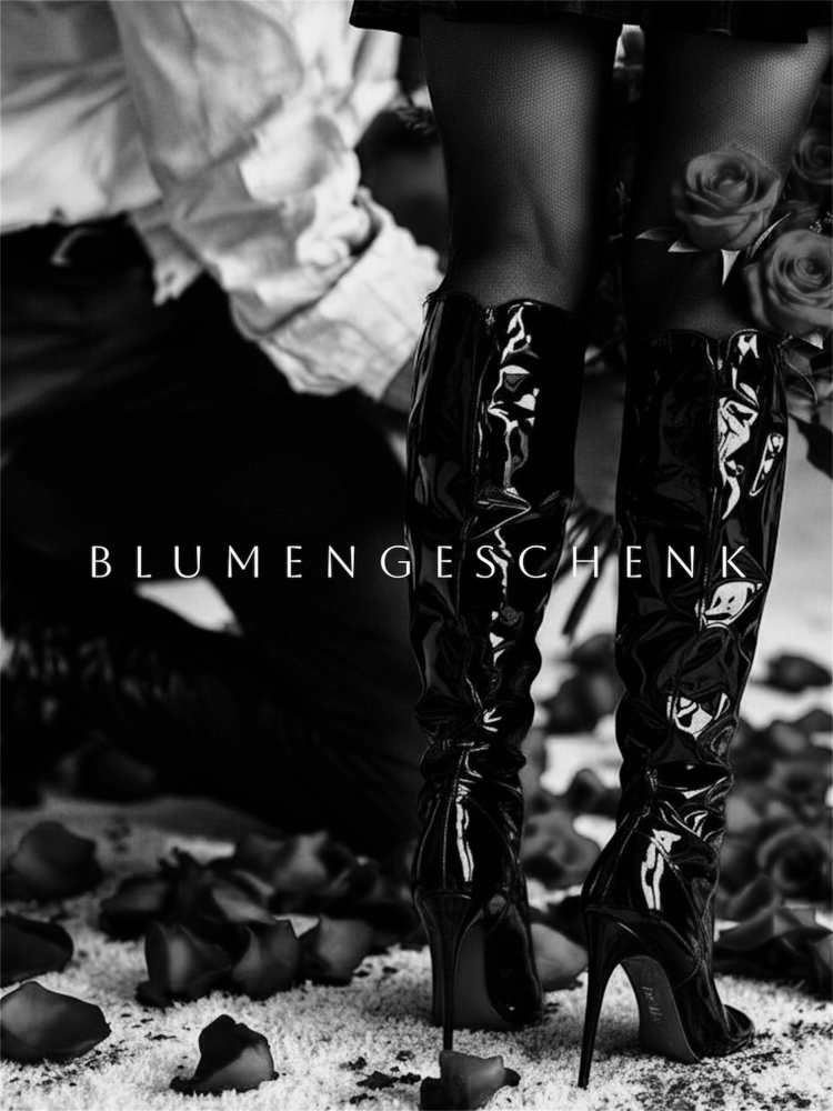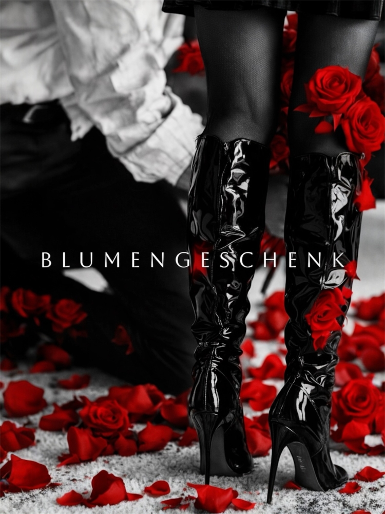 Zu Ihren göttlichen Stiefeln überreiche ich meine Blumen und wünsche Ihnen einen wunderschönen Tag.